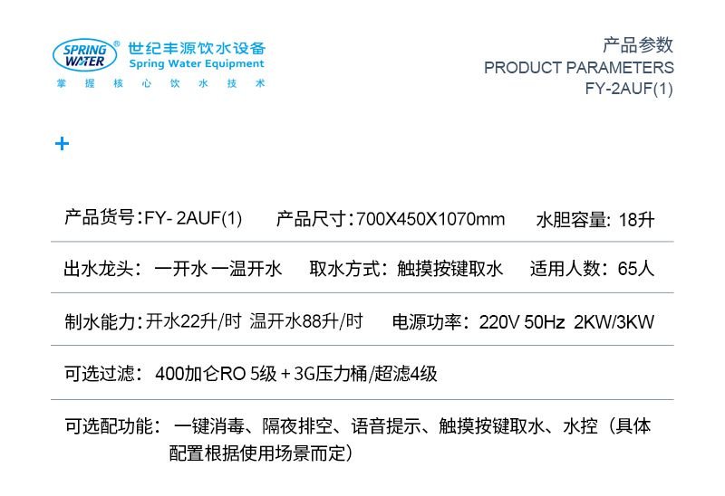 相關標簽:反滲透水處理 50人用觸摸型飲水臺、型號:2AUF