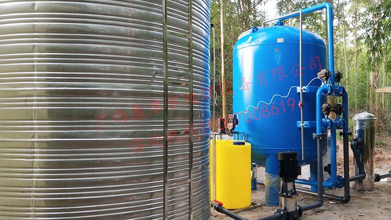 項目名稱:蘇圩河水凈化工程 設備名稱:30噸壓力式凈水設備 工藝流程:河水-原水箱-石英砂過濾器-精密過濾器-二氧化氯消毒-加壓泵-高位水塔 ...