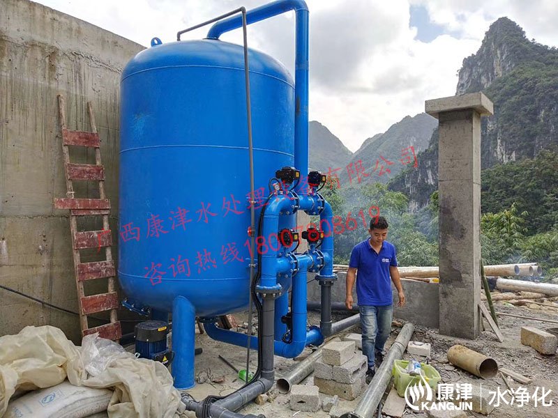項目名稱:百色市凌云縣伶站瑤族鄉40噸壓力式一體化凈水設備 設備名稱:40噸壓力式一體化凈水設備 工藝流程:河水-絮凝加藥-石英砂過濾器-二氧化氯加藥器-凈水箱-各用水點...