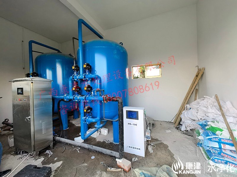 項(xiàng)目名稱:貴港旺嶺村地下水凈化工程 設(shè)備名稱:30噸壓力式凈水設(shè)備 工藝流程:河水-石英砂過(guò)濾器(二級(jí)過(guò)濾)-二氧化氯消毒...