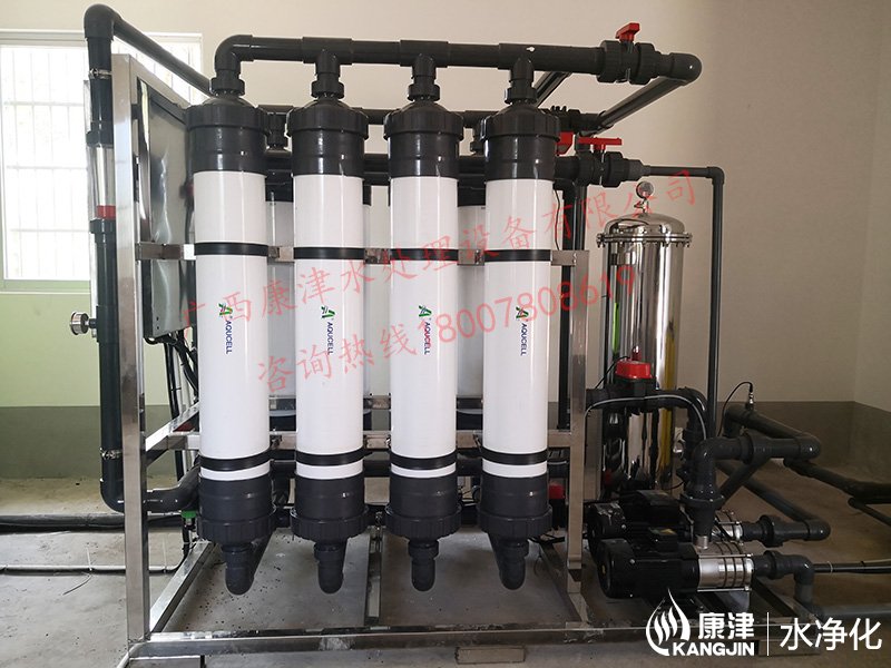 項目名稱:鄉鎮10噸井水超濾凈化設備 設備名稱:10噸超濾軟化水設備 工藝流程:井水-石英砂過濾器-活性炭過濾器-精密過濾器-超濾設備-水箱...