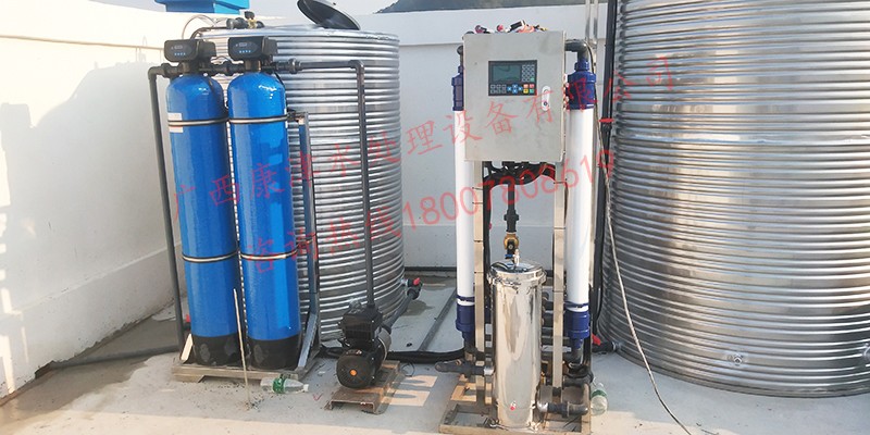 項目名稱:百色田林光伏發電站2噸超濾凈水設備工程 設備名稱:2噸超濾凈水設備 工藝流程:山泉水-原水箱-原水泵-石英砂過濾器-活性炭過濾器-精密過濾器-超濾設備-紫外線殺菌-變頻水泵-凈水箱...