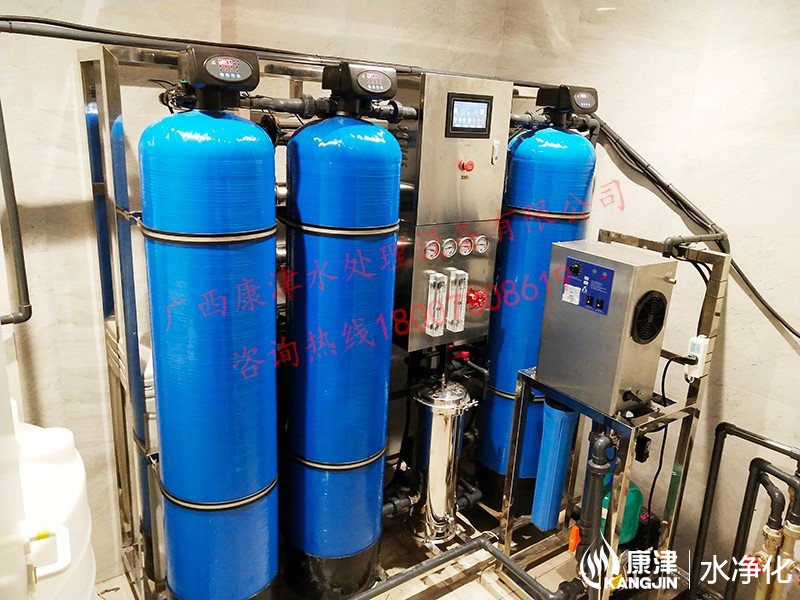 工藝流程:原水箱-原水泵-石英砂過濾器-活性炭過濾器-樹脂過濾器-精密過濾器-反滲透設備-軟水鹽-凈水箱-變頻供水回水殺菌系統-用水點