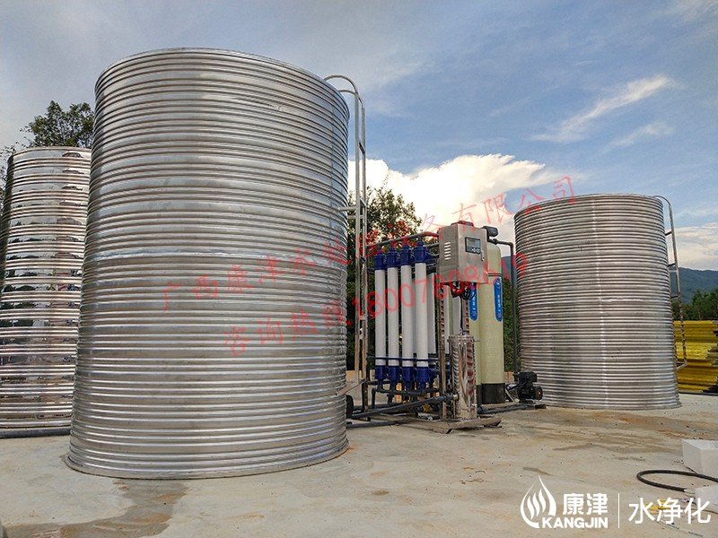 工藝流程:井水-原水箱-原水泵-石英砂過濾器-活性炭過濾器-精密過濾器-超濾設(shè)備-凈水箱