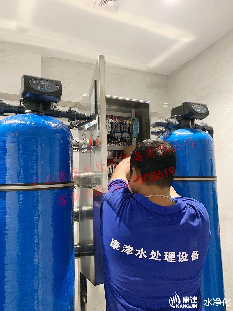 工藝流程:原水箱-原水泵-石英砂過濾器-活性炭過濾器-樹脂過濾器-精密過濾器-反滲透設備-軟水鹽-凈水箱-變頻供水回水殺菌系統-用水點