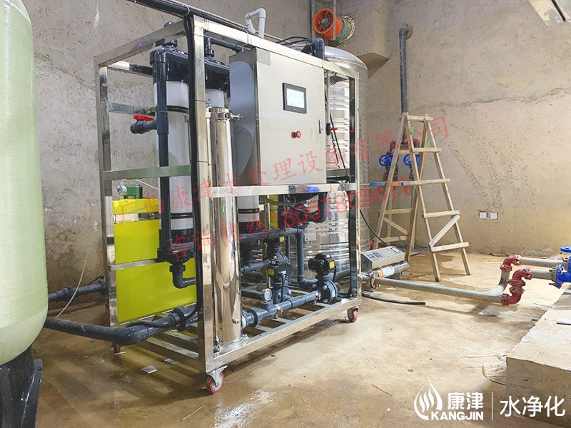 10T/H超濾水處理設備,每天產水240噸左右,業主是廣西大藤峽葛洲壩,產出的凈水用于漁業養殖使用。超濾水處理設備過濾精度為0.005到0.01微米范圍內,可有效去除水中的微粒、膠體、細菌、熱源及高分子有機物質等。設備廣泛應用于礦泉水制造、食品和醫藥生產、城市中水會用等領域。設備工藝流程。原水來自于大壩,進入保溫水箱后經高壓泵進入預處理系統,根據業主水質情況,預處理部分我們推薦的是砂濾和錳砂濾,主要是為了軟化水質。預處理產水接著進入精密過濾器,主要是PP棉過濾工作,PP棉更換成本低,一般3個月左右檢查一次,看情況更換。超濾是一種以篩分為分離原理,以壓力為推動力的膜分離過程,所以超濾前需要增加壓力泵。產出的凈水到水箱后由業主的抽水泵供應到用水點。在這里說下,我們看到成套設備有一個黃色的桶,它是負責給超濾組件加藥清洗用的,及時清理超濾膜內的雜質,保證膜元件的使用壽命。