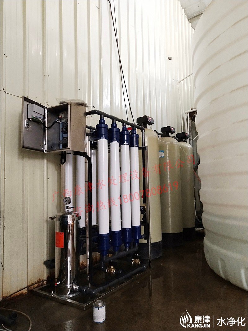 工藝流程:井水-原水箱-石英砂過濾器-活性炭過濾器-超濾-軟化水-凈水箱