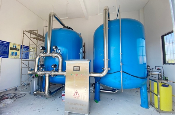 項目名稱:農(nóng)村飲水安全鞏固提升工程 設(shè)備名稱:貴港市旺華村50噸壓力式一體化凈水設(shè)備 工藝流程:河水-絮凝加藥-沉淀過濾器-石英砂過濾器-二氧化氯消毒...