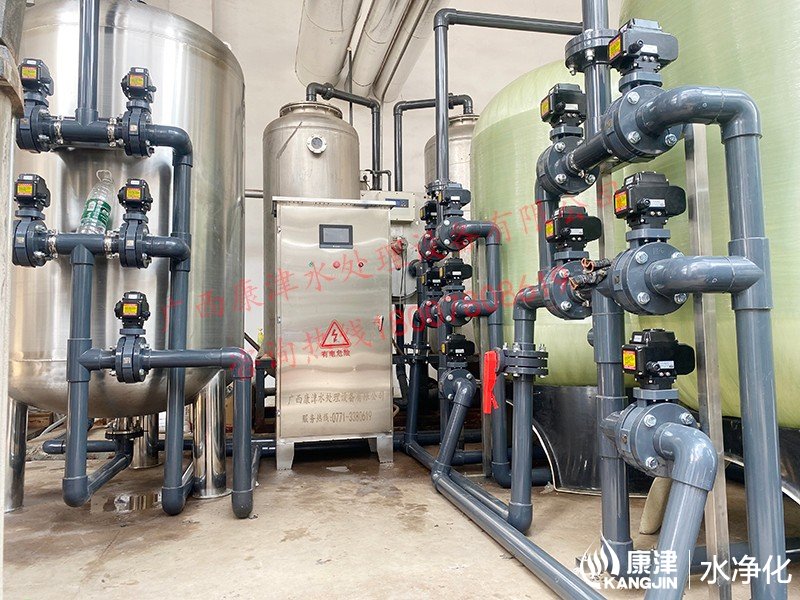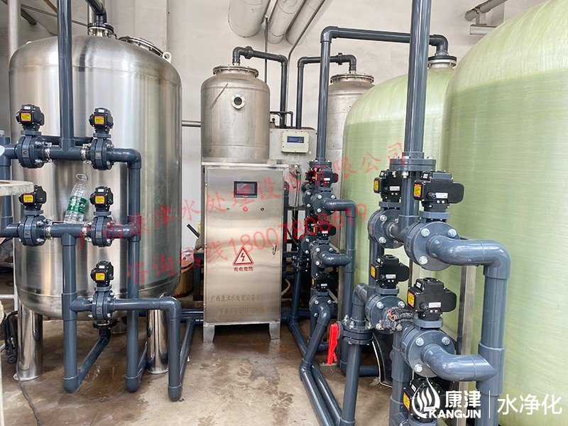 工藝流程:地下水+自來水-水箱-石英砂過濾器-軟化水設備1-軟化水設備2-精密過濾器-各用水點