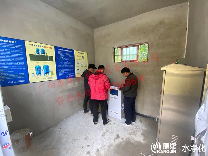 工藝流程:河水-絮凝加藥-沉淀過濾器-石英砂過濾器-二氧化氯消毒