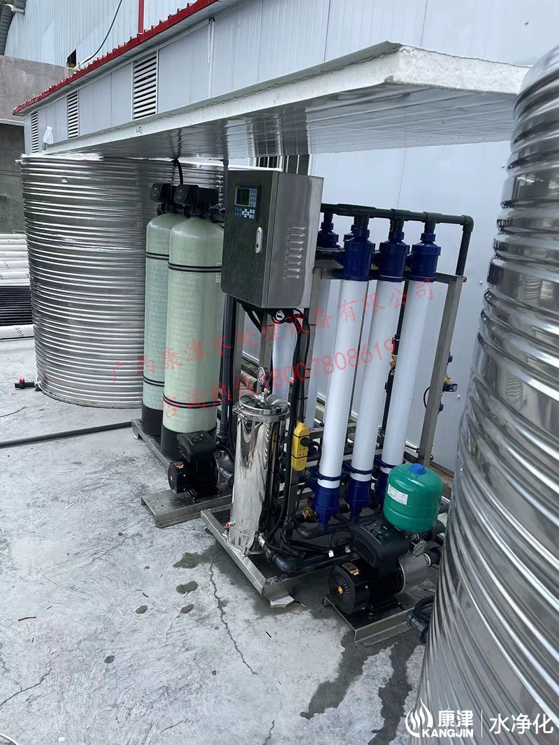 工藝流程:地下水-原水箱-原水泵-石英砂過濾器-活性炭過濾器-精密過濾器-超濾設(shè)備-凈水箱