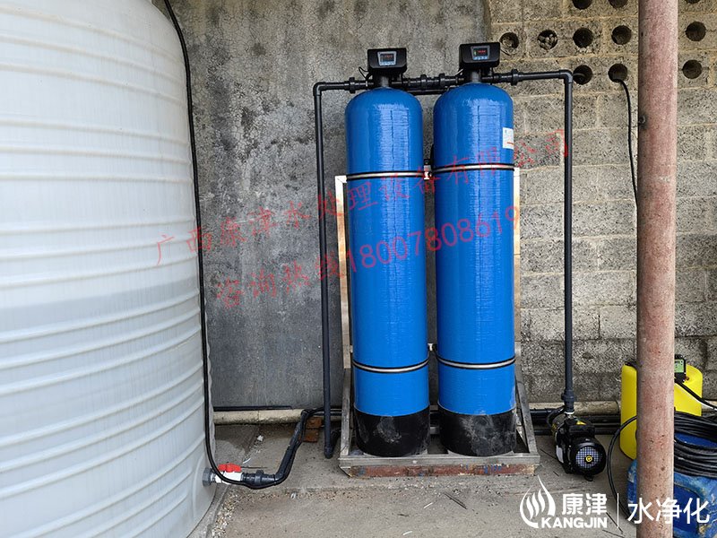 工藝流程:井水-原水箱-石英砂過濾器-活性炭過濾器-精密過濾器-增壓泵-反滲透設備-凈水箱